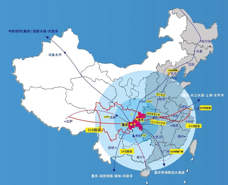 區位條件優良。梁平處于渝東北三峽庫區城鎮群和川東北的重要聯結點上,是主城都市區東向開放的重要支點,是深化川渝東北合作的天然橋頭堡,是明月山綠色發展示范帶建設重要板塊。距主城都市區60公里,到萬州機場、達州機場、萬州新田港均半小時車程,自古為交通南北、東出西進的重要通道。