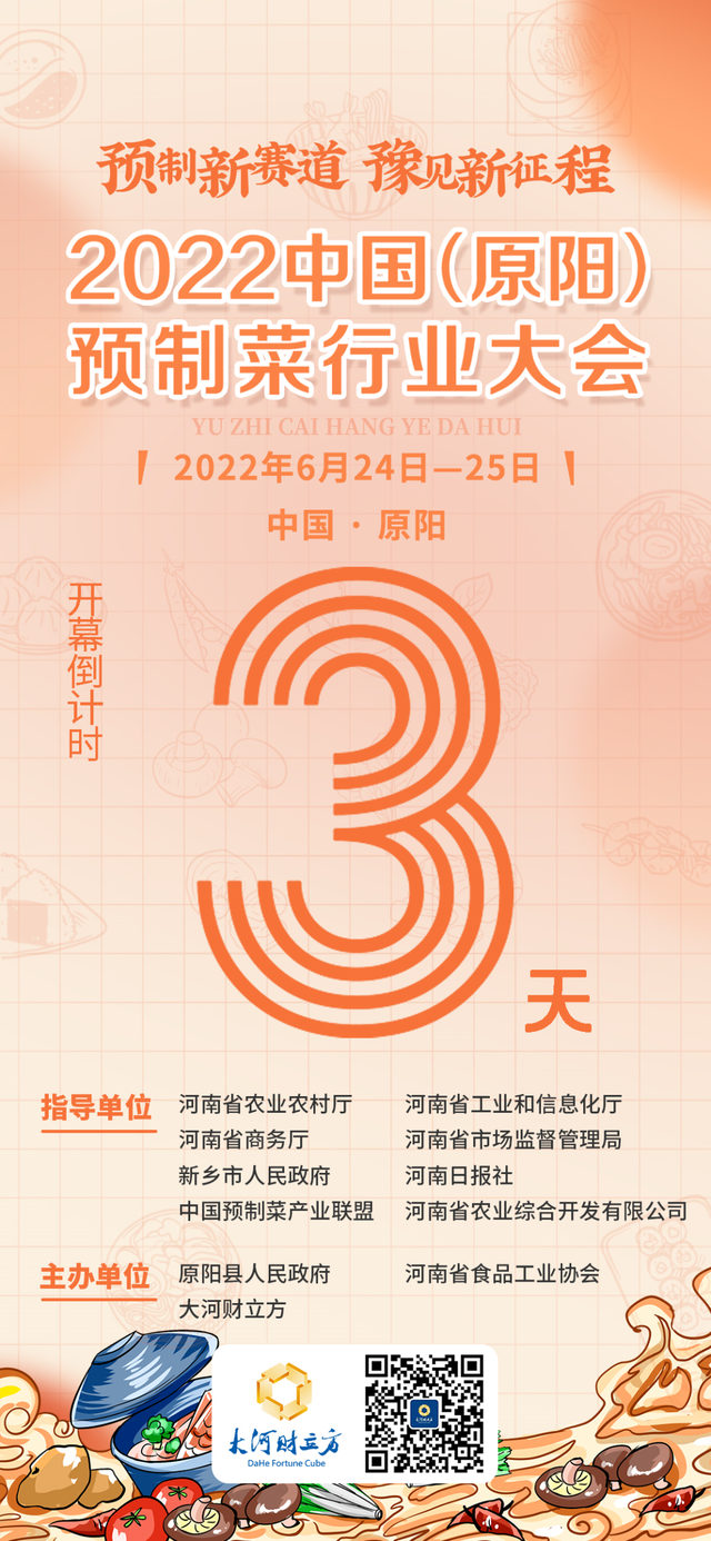 2022年6月24日至25日,中國(guó)(原陽(yáng))預(yù)制菜行業(yè)大會(huì)將在黃河之畔的原陽(yáng)舉行。