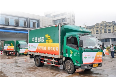11月21日,中國郵政梁平分公司郵件處理中心,裝滿預制菜的貨車準備發車。