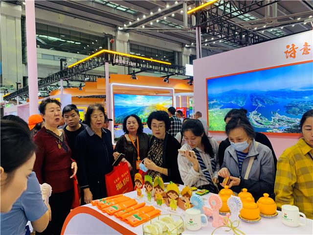 12月1日,深圳食博會上,市民游客在梁平展區觀賞“五子登科”文創產品。